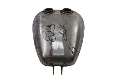 Gas tank is dual cap style with a right side petcock location and a fuel capacity of 4.2 gallons. Paughco gas tanks are shipped "raw" and may have oxidation which must be sanded off then coated with primer prior to painting. Tanks use early style pre-1975 type petcock. Check the tank for flaws and fit before painting. Do not grind or sand the seams or joints. Clean the inside of the tank. It is suggested to pressure test and use a tank sealer. We suggest using Kreem gas tank combo kit to clean, condition, and seal to help stop leaks and prevent corrosion. Check petcock opening, making sure the petcock can be easily installed. Petcock fitting should be masked or plugged during painting for easy installation of petcock. Fits:XL 1957-1978K 1952-1956 UOM: 1 - EA Style: Porkster 2011 Catalog pages: 944 Measurements Top Length: 15" Bottom Length: 13" Rear Width: 7" Front Width: 11" Rear Height: 5" Front Height: 8-1/2" Front Tunnel Height: 2" Rear Tunnel Height: 1/2" Tunnel Length: 15-1/2" SAV for Harley Davidson Motorcycles