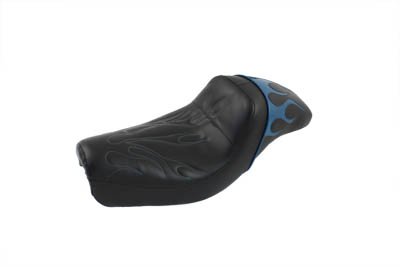 Teal flame style gunfighter seat features sewn inlay of colored flames on rear pad area with matching flame stitch and thread in front driver area. Order bracket separately. Fits:XL 2004-2006 UOM: 1 - EA Style: Gunfighter 2011 Catalog pages: 961 Order #31-0653 bracket SAV for Harley Davidson Motorcycles