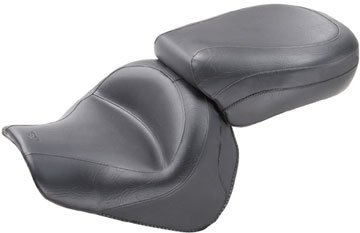 Mustang Royal Star seats measure no higher than the stock seat, which tends to collapse to a lower, uncomfortable seating position. The deeply pocketed front bucket is a full 17 inches across. Additional driver back support is provided by the passenger seat that extends forward. The rear seat is 14 inches wide and utilizes internal steel support wings for all day comfort. The best riding posture for unparalleled long-distance comfort! The front bucket comfortably angles the driver back into the seat to eliminate that pushed-forward feeling. Note: Does not fit Venture models.