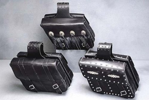 Star Slant Saddlebags-Plain.These handcrafted, throw-over design leather bags feature a plastic base insert and a hard rubber back to help hold their shape when empty. Interior pockets and zippered pouch included. A classic look for your bike. Dimensions: 10" x 15" x 5".*Saddlebag Support Bars (sold separately) required for installation.