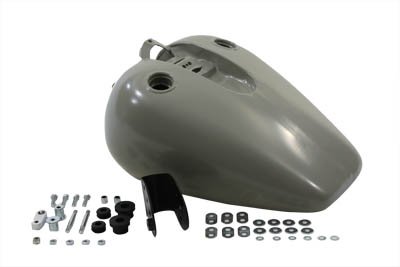 Gas tank has a left side petcock location and a fuel capacit y of 3.2 gallons. Tank accepts a two light, three light, or cast type dash kit. Tunnel at the bottom bracket measures 2-1/2". At the top of the tunnel just before it widens, it measures 2-3/4", and at the top bracket the tunnel measures 3-3/8". You must use an XLS or shorter seat for 1982-up models. Check the tank for flaws and fit before painting. Do not grind or sand the seams or joints. Clean the inside of the tank. It is suggested to pressure test and use a tank sealer. We suggest using Kreem gas tank combo kit to clean, condition, and seal to help stop leaks and prevent corrosion. Check petcock opening, making sure the petcock can be easily installed. Petcock fitting should be masked or plugged during painting for easy installation of petcock. Fits:XL 1982-1994 UOM: 1 - KIT Style: Bobbed 2011 Catalog pages: 941 Measurements Top Length: 18.5" Bottom Length: 16.5" Rear Width: 7" Front Width: 13.5" Rear Height: 2" Front Height: 8.5" Front Tunnel Height: 8" Rear Tunnel Height: q" Tunnel Length: 17" SAV for Harley Davidson Motorcycles