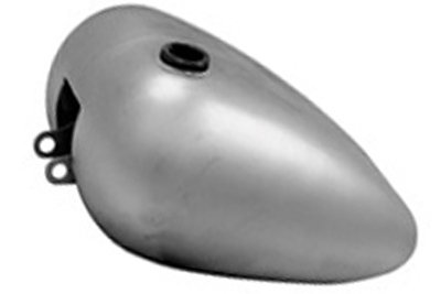 Gas tank is single cap style with a left side petcock location, and a fuel capacity of 4.2 gallons. Paughco gas tanks are shipped "raw" and may have oxidation which must be sanded off then coated with primer prior to painting. Tanks use 1975-up petcock with external thread for nut. Tank is rubber mounted style. Check the tank for flaws and fit before painting. Do not grind or sand the seams or joints. Clean the inside of the tank. It is suggested to pressure test and use a tank sealer. We suggest using Kreem gas tank combo kit to clean, condition, and seal to help stop leaks and prevent corrosion. Check petcock opening, making sure the petcock can be easily installed. Petcock fitting should be masked or plugged during painting for easy installation of petcock. Fits:XL 1995-2003 UOM: 1 - EA Style: Porkster 2011 Catalog pages: 944 Measurements Top Length: 18" Bottom Length: 15" Rear Width: 7" Front Width: 14" Rear Height: 4" Front Height: 8" Front Tunnel Height: 4" Rear Tunnel Height: 1" Tunnel Length: 19" SAV for Harley Davidson Motorcycles