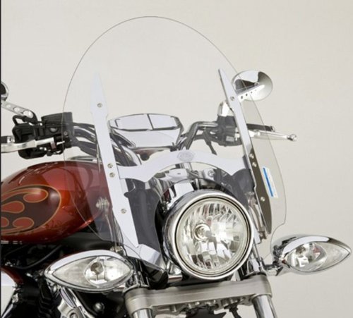 Quick-Release Touring Windshield -22" Tall Chrome. Made of tough 4.5mm polycarbonate treated with the new-generation QuantumTM Coating to provide a long lasting, durable, protective finish. This makes the windscreen three times more scratch-resistant than typical acrylic products, and also much more resistant to damage from bugs, stone chips, road grime, or even everyday cleaning. Designed to compliment the lines of the Stryker. This extra attention to detail will help keep your windshield looking new longer, and that's a clear benefit you'll enjoy on every ride. The unique quick-release feature allows you to quickly change your windshield before riding due to a change in weather or attitude. A lock is included for added security. Replacement windscreens are also available. Quick-Release Windshield Mounts are required for installation, sold separately. Height measured from top of headlight cutout to top of windshield.