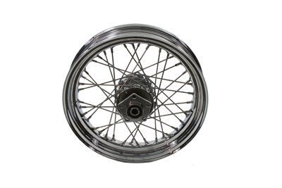 Rear wheel assembly features a 40 hole 16" x 3" chrome rim, 40 chrome spokes and a rear hub. Wheel is laced and trued. Accepts a 130-140 tire size. **NOTE: All spokes on wheel need to be inspected and re-torqued after 500 miles of original installation. Fits:FXST 1986-1996FXR 1986-1994FXRS 1986-1994FXSTC 1986-1996FLST 1986-1996FXDG 1991-1996XL 1986-1999 UOM: 1 - EA Location: Rear 2011 Catalog pages: 405, 955 Rim width is measured by the distance between the rim flanges. Additional photos Additional photos 45-0409 - Stainless Steel 16" Spoke Set SAV for Harley Davidson Motorcycles