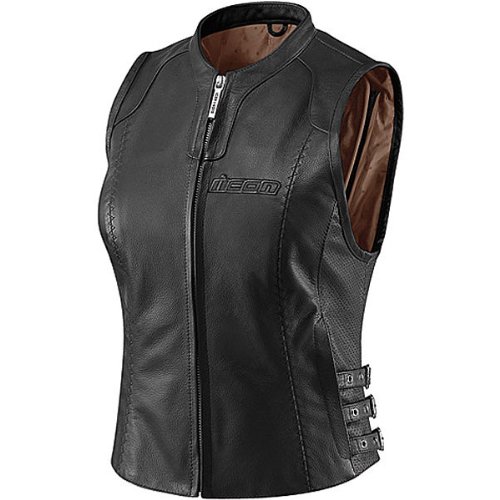 The Detailed Description of Icon Bombshell Women's Leather Road Race Motorcycle Vest - Black / X-LargeFeatures