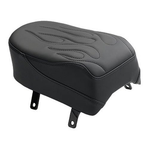 Provide a passenger with custom-look styling and extra comfort in the easiest way possible with this Flamed Passenger Seat that can accept a Passenger Backrest (sold separately). This seat - which features stitching in a unique flame pattern - provides cushioning comparable to that of the original equipment, but it features Cool Leather and has a slot to accept the backrest. The Cool Leather doesn't absorb the sun's heat the way other seats do, so it's cooler when you return to a bike parked in the sun. The available backrest (sold separately) fits quickly and easily into a slot at the rear of the seat.