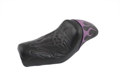 Purple flame style gunfighter seat features sewn inlay of colored flames on rear pad area with matching flame stitch and thread in front driver area. order bracket separately. Fits:XL 2004-2006 UOM: 1 - EA Style: Gunfighter 2011 Catalog pages: 961 Order #31-0653 bracket SAV for Harley Davidson Motorcycles